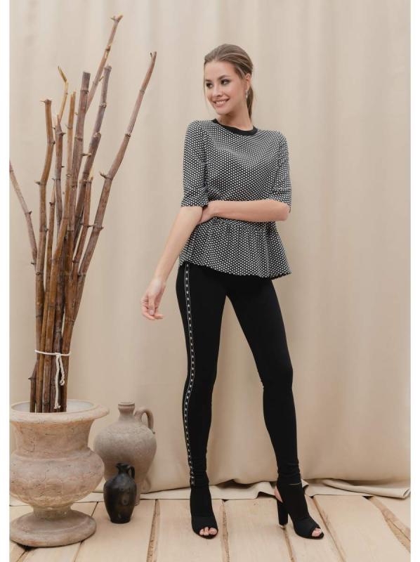 Блузка женская из текстильной ткани. Горловина круглая обработана притачной планкой из отделочного полотна. Рукав втачной короткий. Блузка отрезная по линии талии. Нижняя часть изделия присборена.