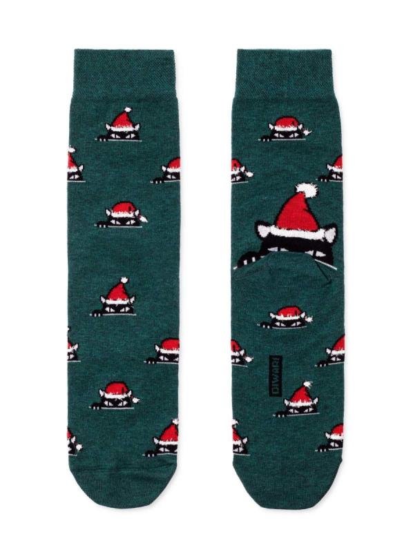 Чоловічі шкарпетки з бавовни. Малюнки вив'язані з використанням об'ємної пухнастої нитки, з новорічною тематикою.